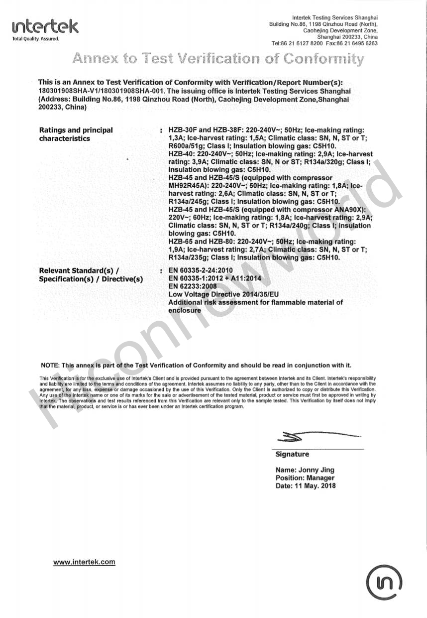 กลุ่มผลิตภัณฑ์เครื่องทำน้ำแข็ง, เครื่องทำความเย็น, เครื่องแช่แข็ง , เครื่องทำไอศกรีม , ตู้แช่ไวน์ และได้การรับรองคุณภาพจาก CE, ETL, CB, GS, GB, LFGB, DGCCRF, ISO9001, ISO14001, KC